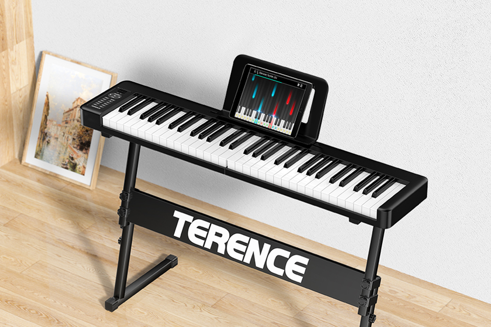61個(gè)標(biāo)準(zhǔn)鋼琴鍵,配重力度感應(yīng)鍵盤 |